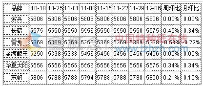 图表二::11—12月全国主要品牌铜版纸250g市场成交价格走势(单位:元/吨)